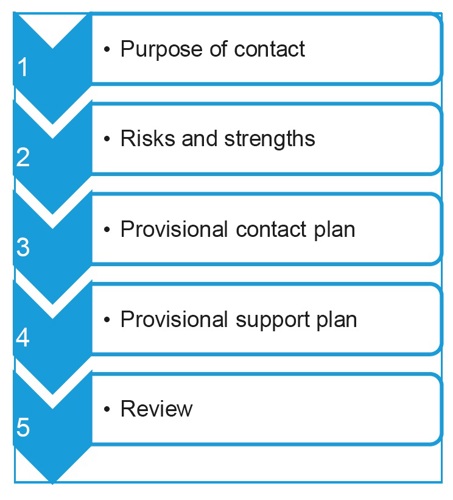 This should include safety planning with the child (if age appropriate) or with key people (eg, placement family) to ensure children will be safe. |